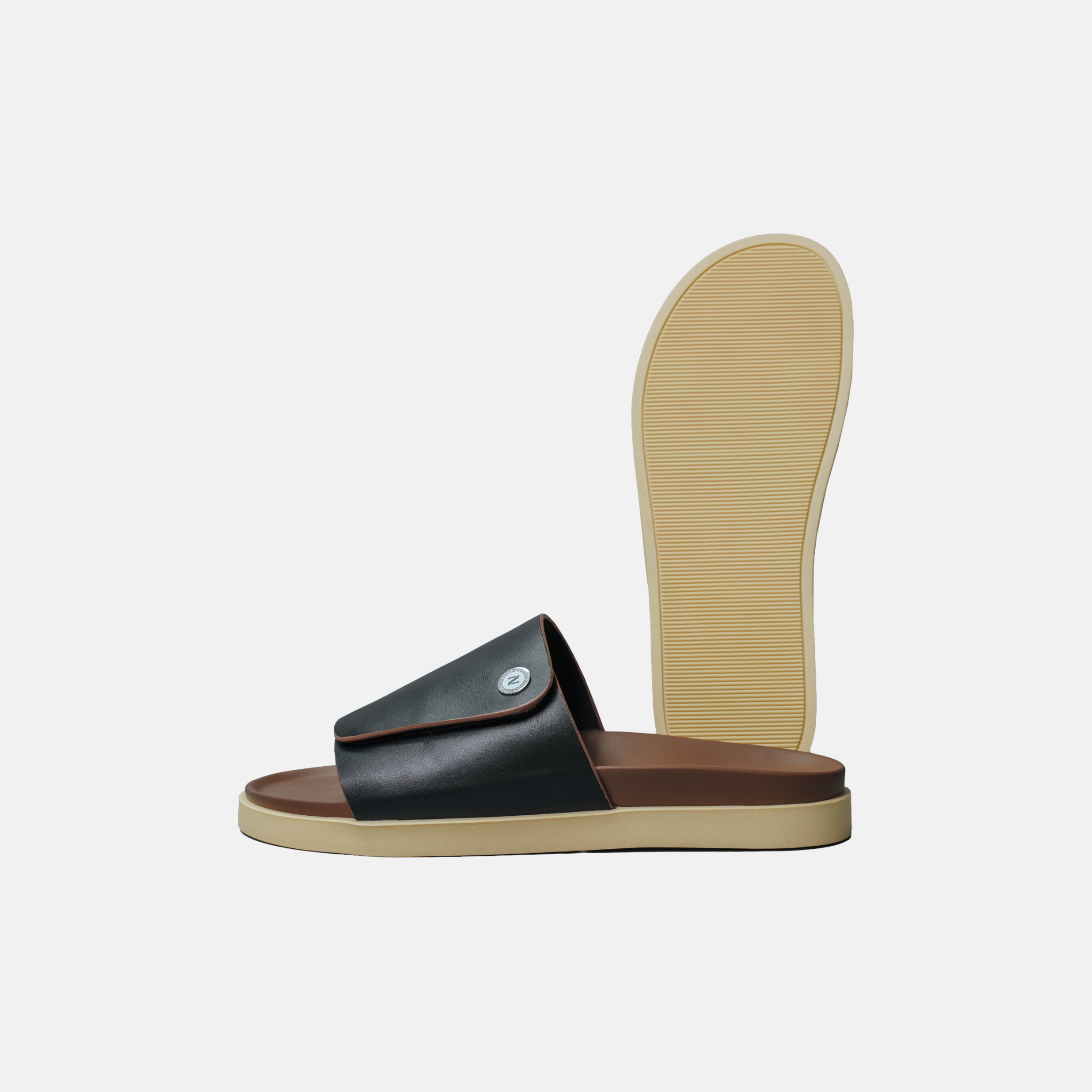 - Quai da rộng cách điệu: Với tông màu đen sâu kết hợp viền nâu kem tinh tế, tạo sự linh hoạt và dễ dàng khi xỏ dép, đồng thời luôn đảm bảo được sự sang trọng, lịch lãm.